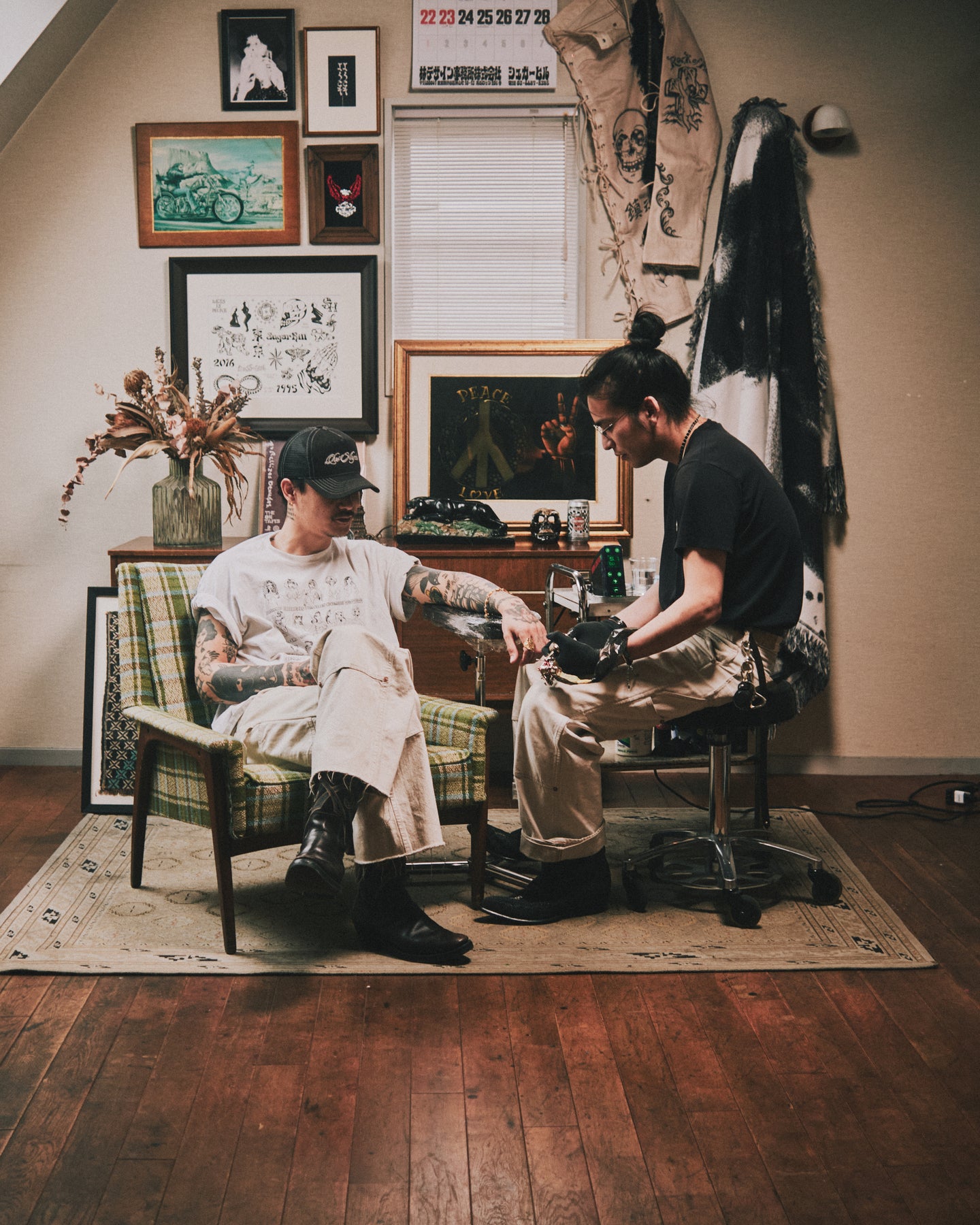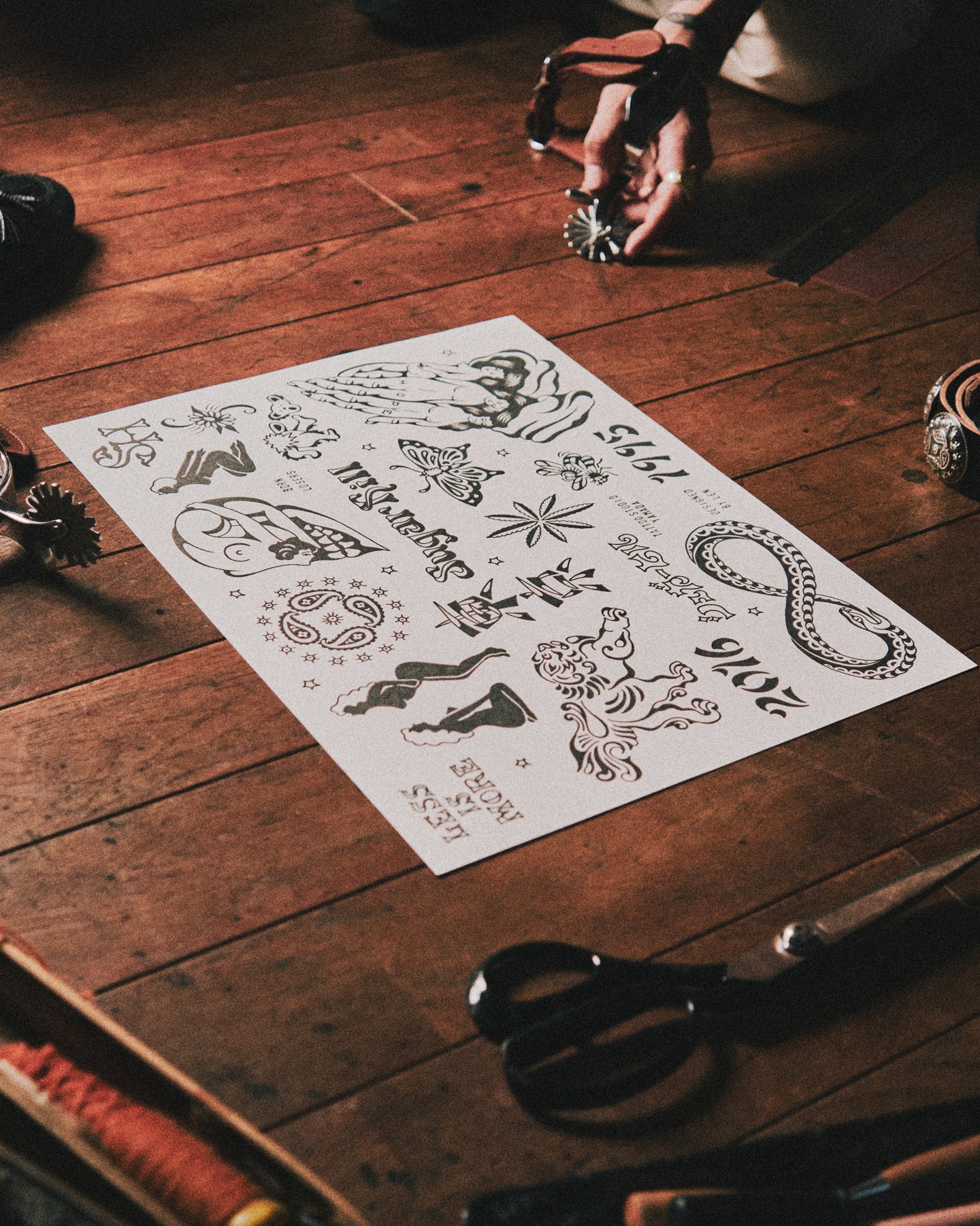 デザイナー林陸也とタトゥーアーティスト山田蓮の関係性から生まれた本企画では、山田蓮による書き下ろしのタトゥーフラッシュをデザインに落とし込み、ブランドの歴史や遊び心を感じさせるモチーフを随所に配置しています。