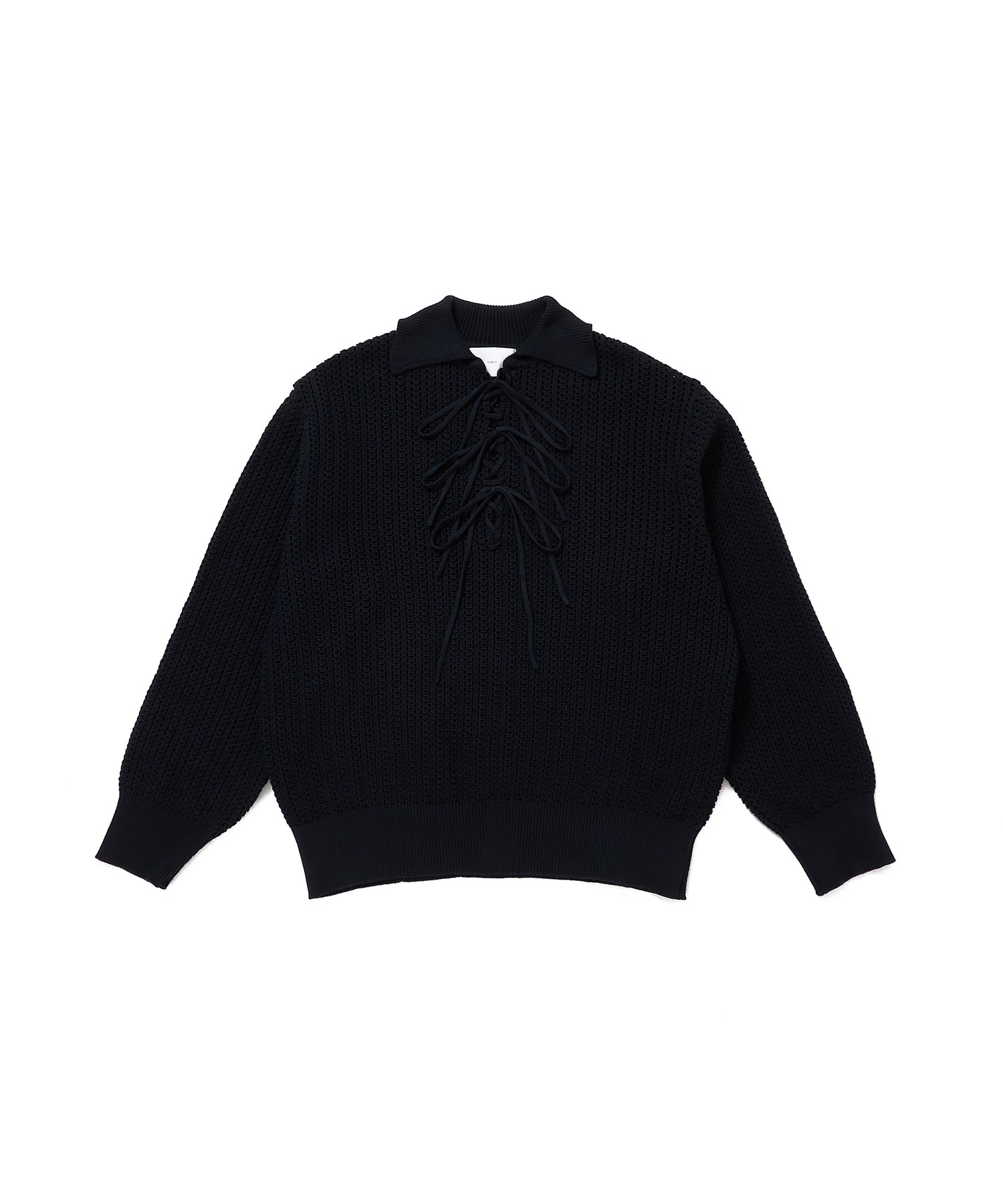 最高級クラスのコットンを混紡した糸を使用し、透け感のある編地によりニット素材でありながら春夏シーズンにも対応。