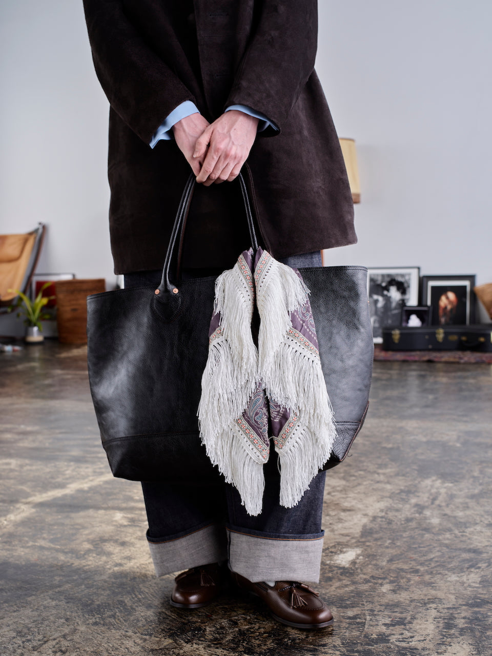 定番のバンダナに、動きのあるフリンジをプラス。細かな柄のチロルテープを縁取りに。控えめながら存在感を放ちます。首元に巻く、バッグに結ぶ、腰に垂らす。一枚で多彩な使い方が楽しめます。