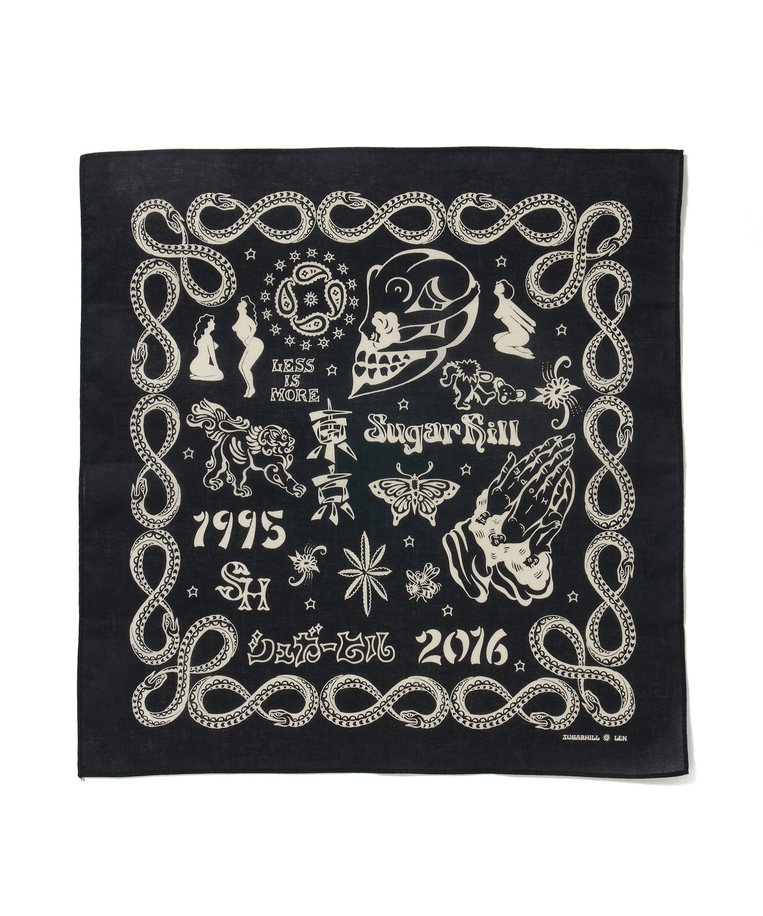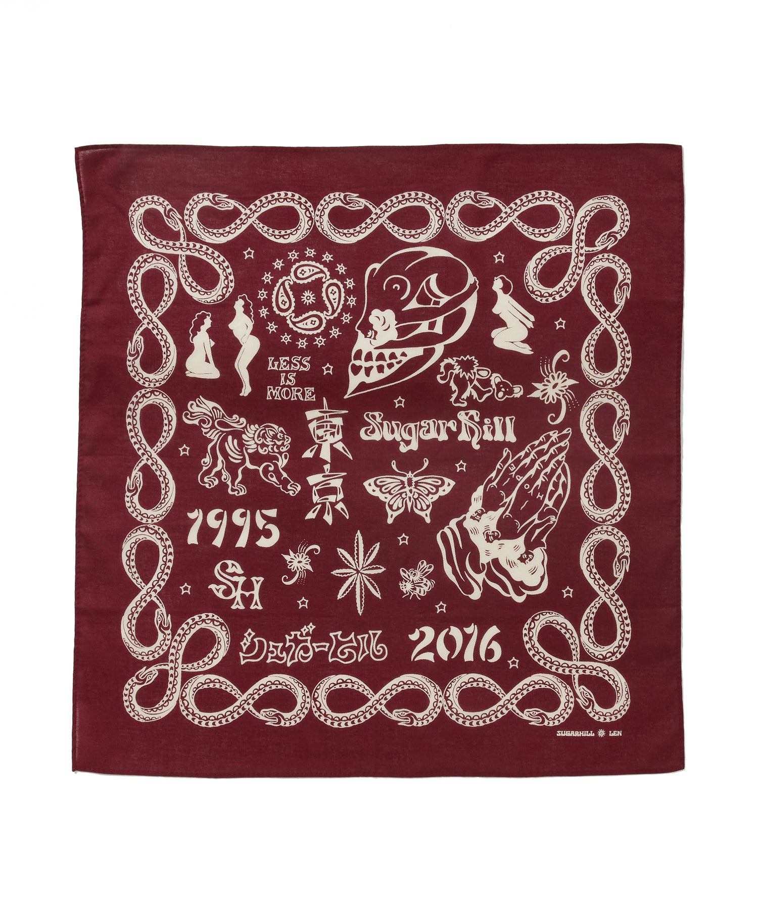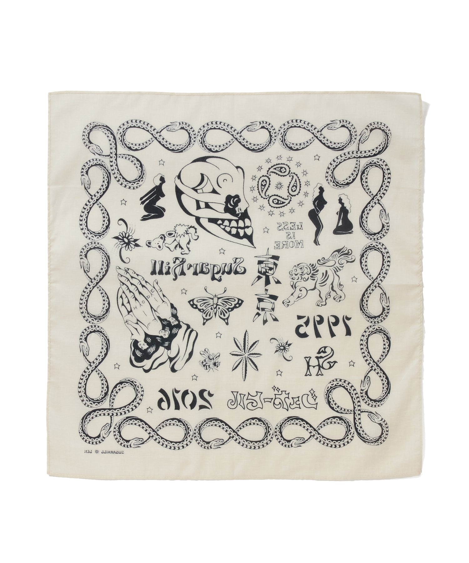 ブランド10周年を記念して制作された、タトゥーアーティスト・山田蓮による描き下ろしデザインを全面プリントしたバンダナ。アニバーサリーアイテムとして特別感のある仕上がりです。