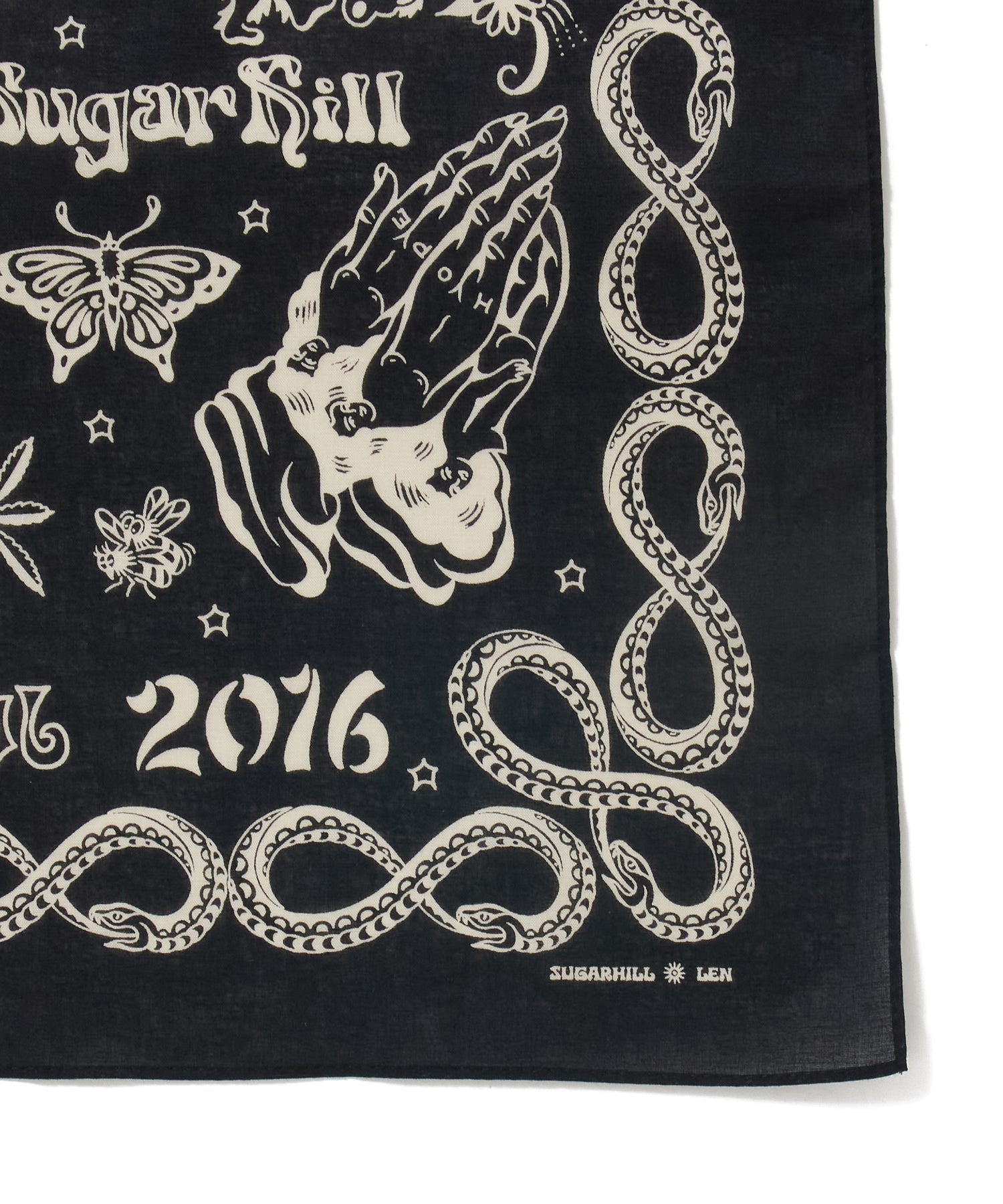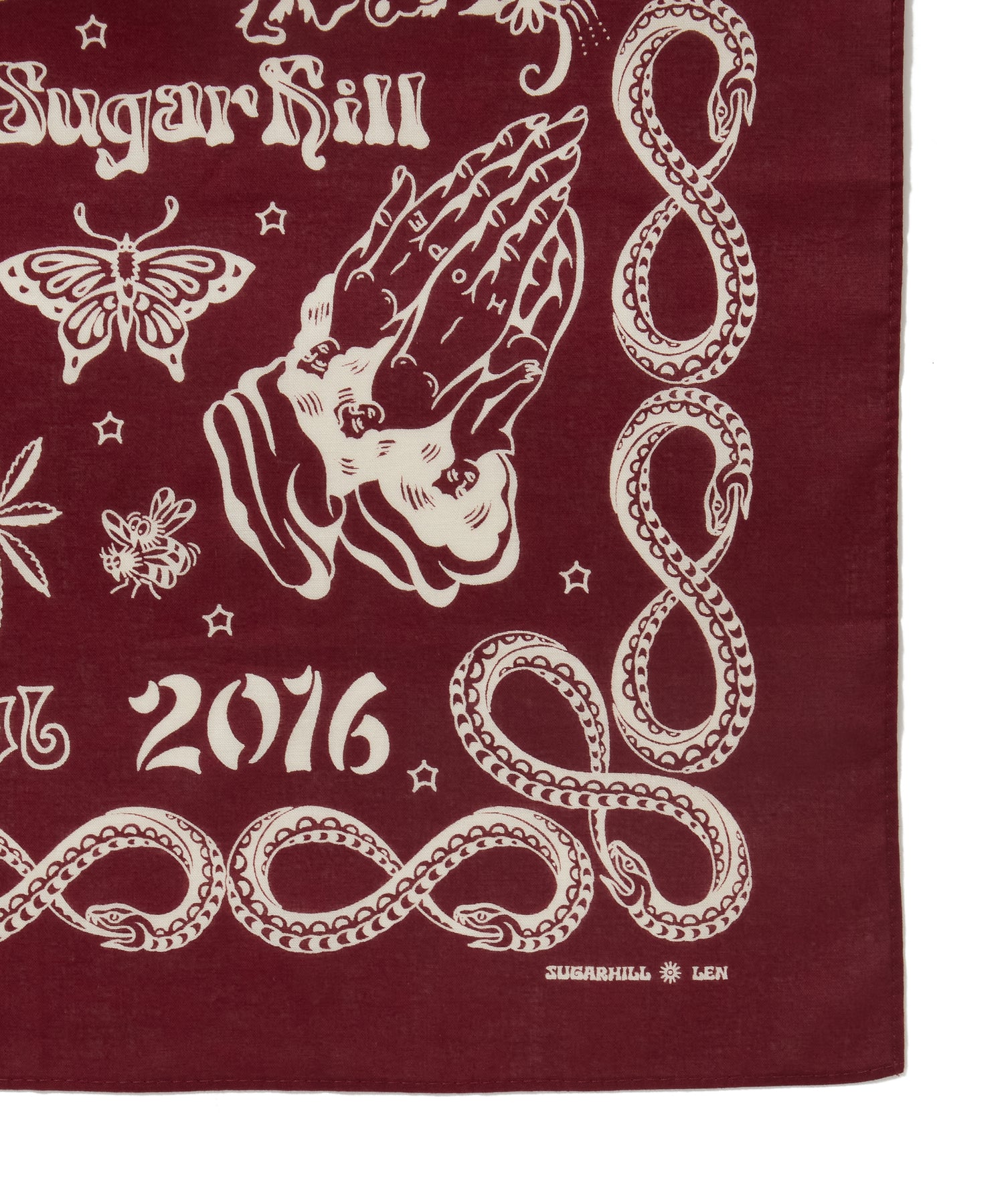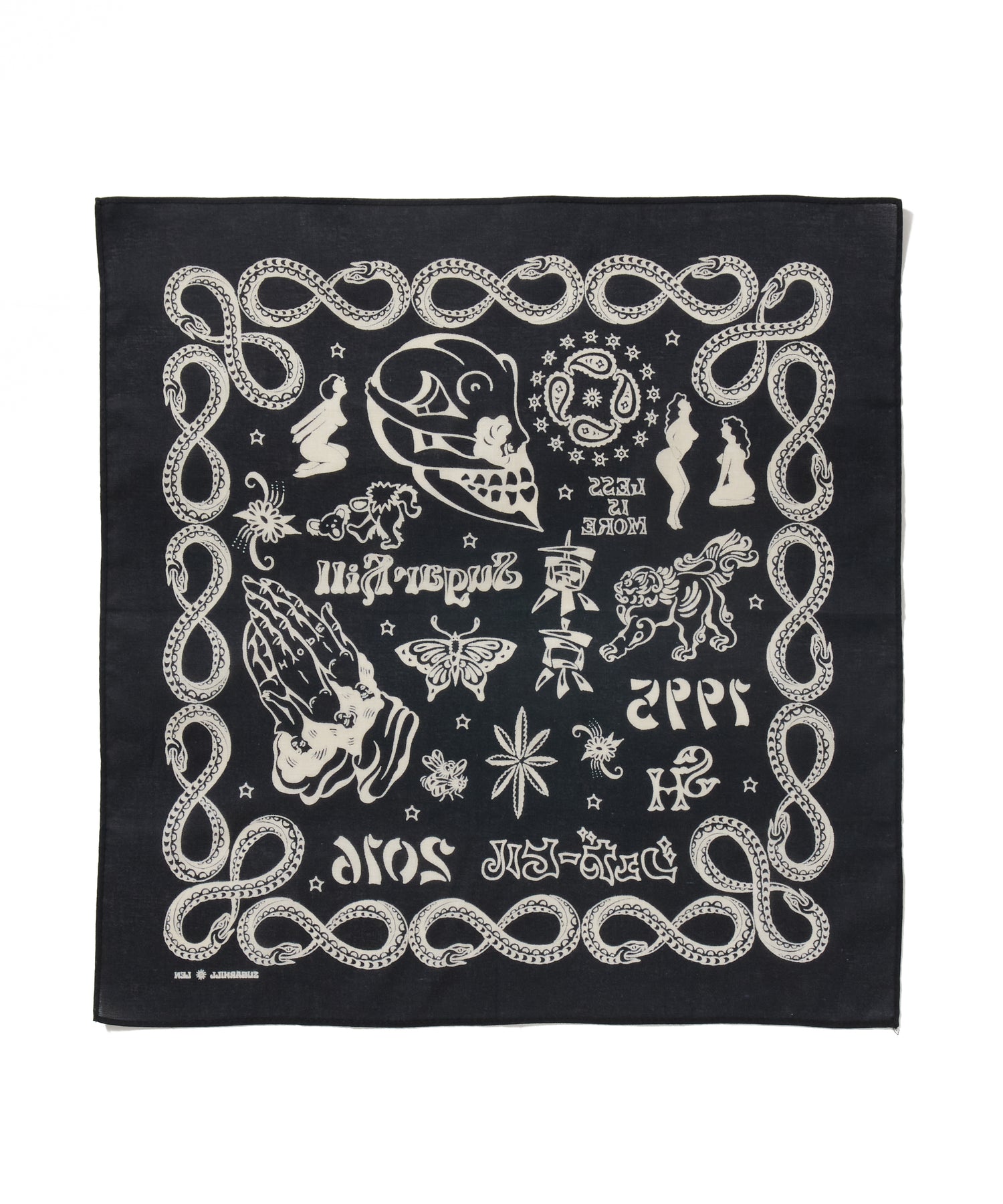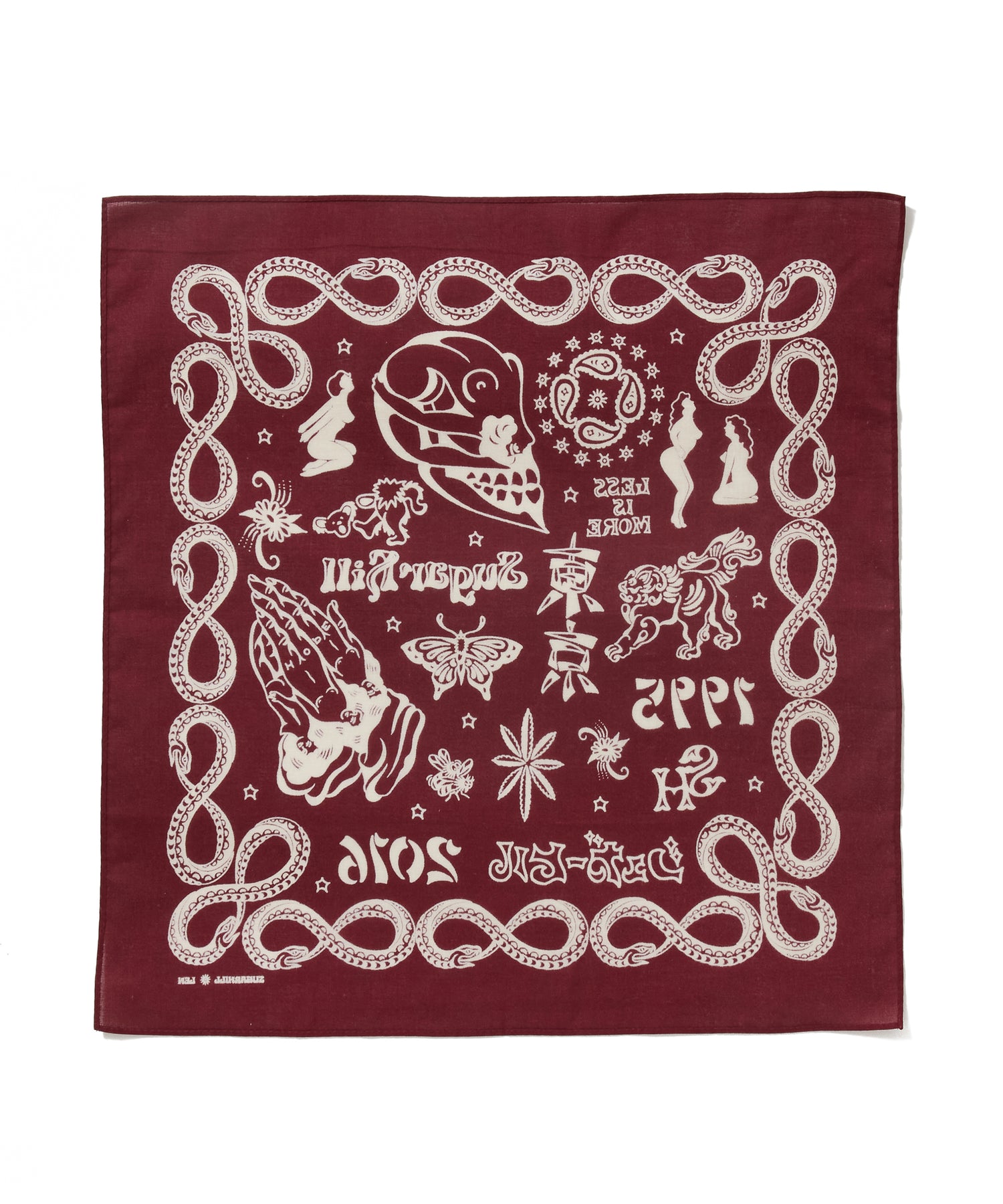 ブランド10周年を記念して制作された、タトゥーアーティスト・山田蓮による描き下ろしデザインを全面プリントしたバンダナ。アニバーサリーアイテムとして特別感のある仕上がりです。