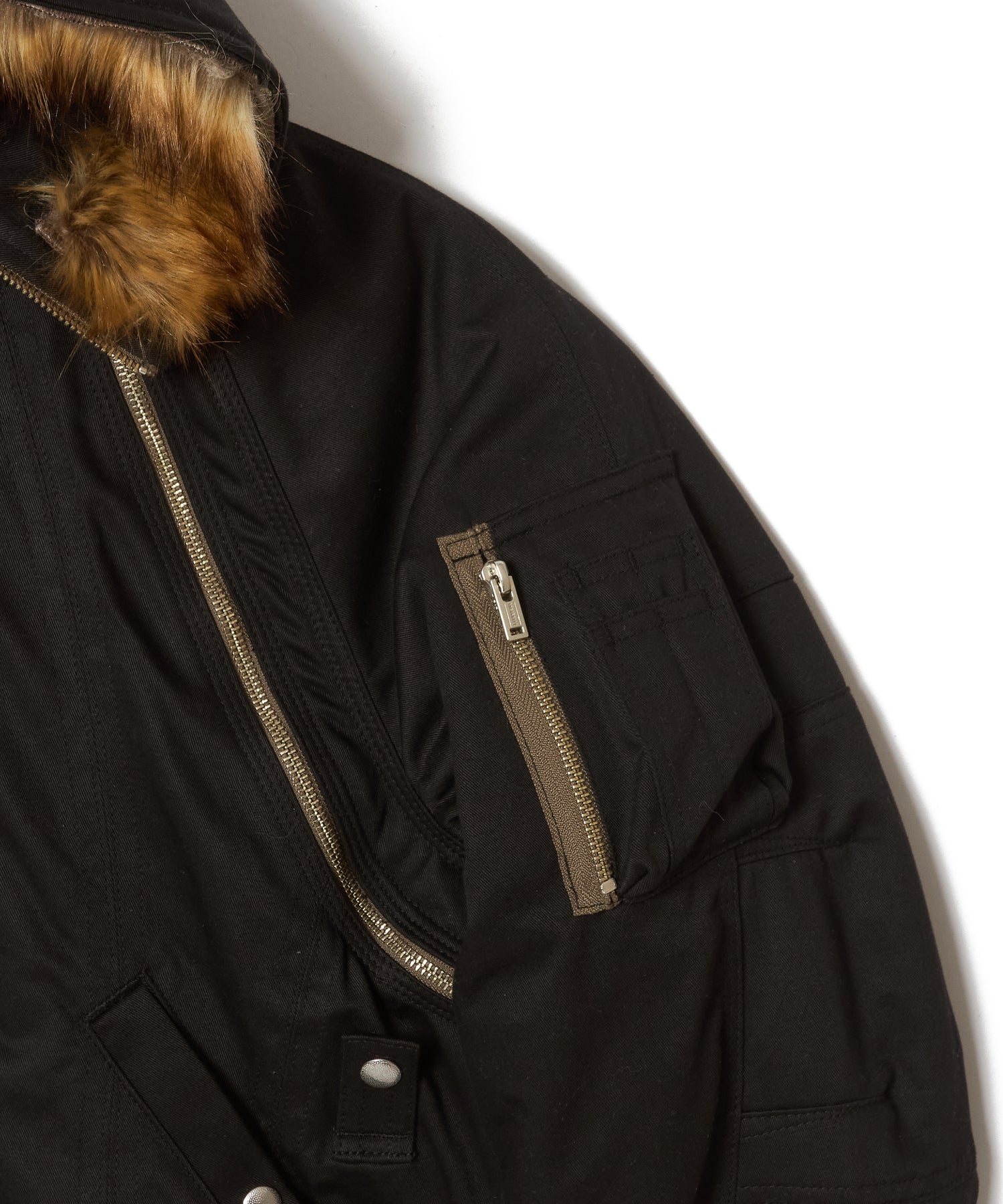 SIZE:2 肩幅49cm / 着丈66.5cm / バスト113.5cm / 袖丈70cm / 裄丈 94.5cm / フロントZIP 69cm / フードZIP 66cm / 袖PK ZIP 12cm SIZE:3 肩幅51cm / 着丈68.5cm / バスト115.5cm / 袖丈72cm / 裄丈 96.5cm / フロントZIP 70cm / フードZIP 66cm / 袖PK ZIP 12cm