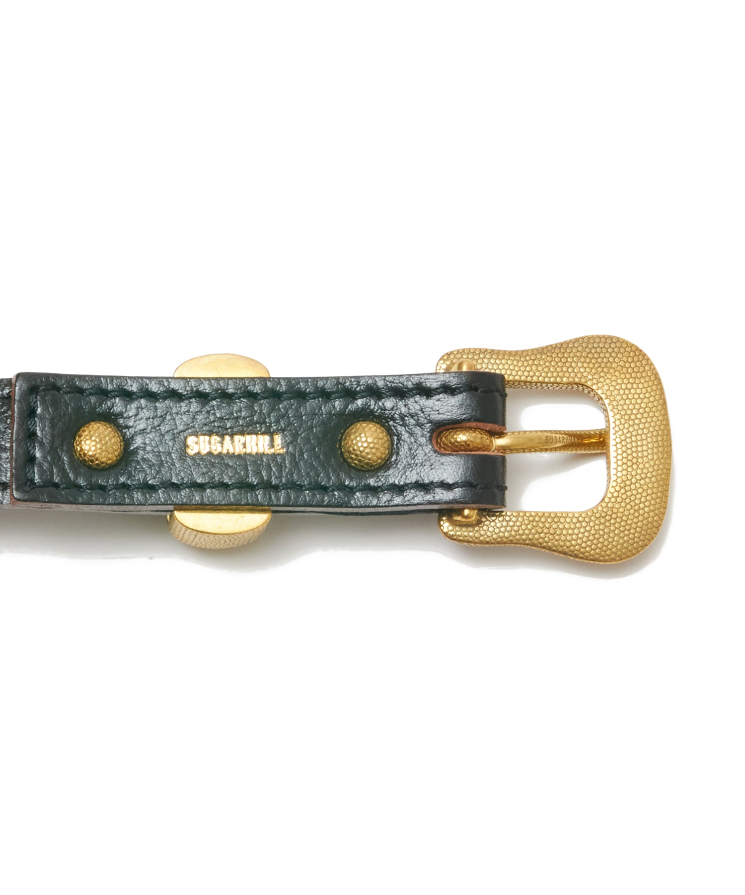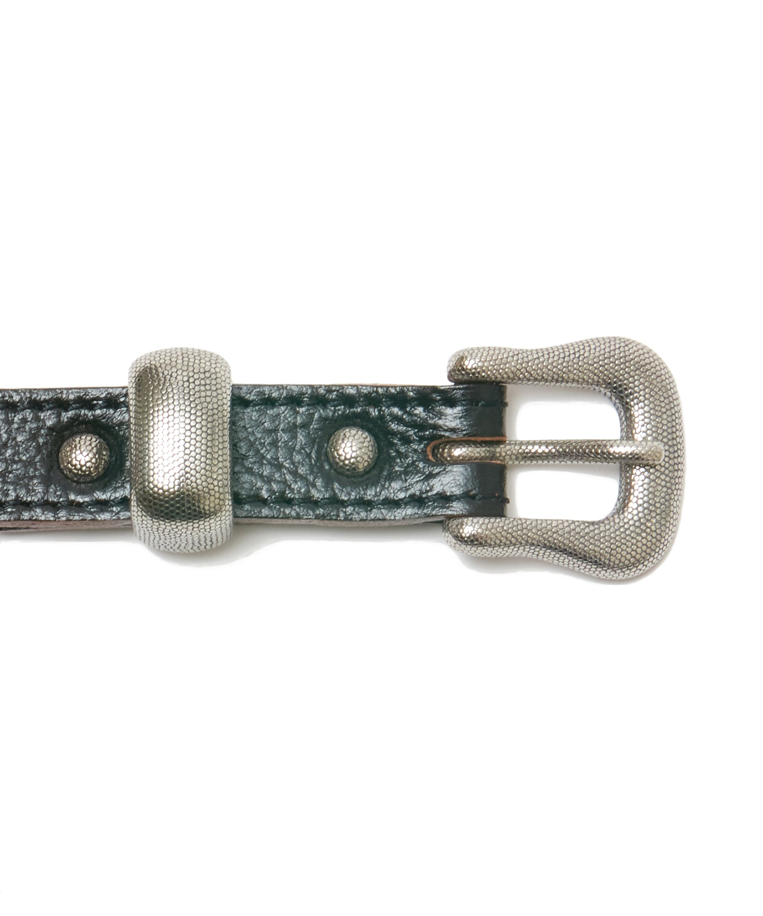 ワードローブにアクセントをプラスできるこのロングベルトは、オリジナルのバックルとスタッドのアクセントが付いています。バックルとスタッズはミリタリーベルトを彷彿とさせる質感。レザーには丁寧にエンボス加工が施され、高級感を醸し出しています。レースアップディテールが、ワードローブに程よいアクセントを添える一本です。