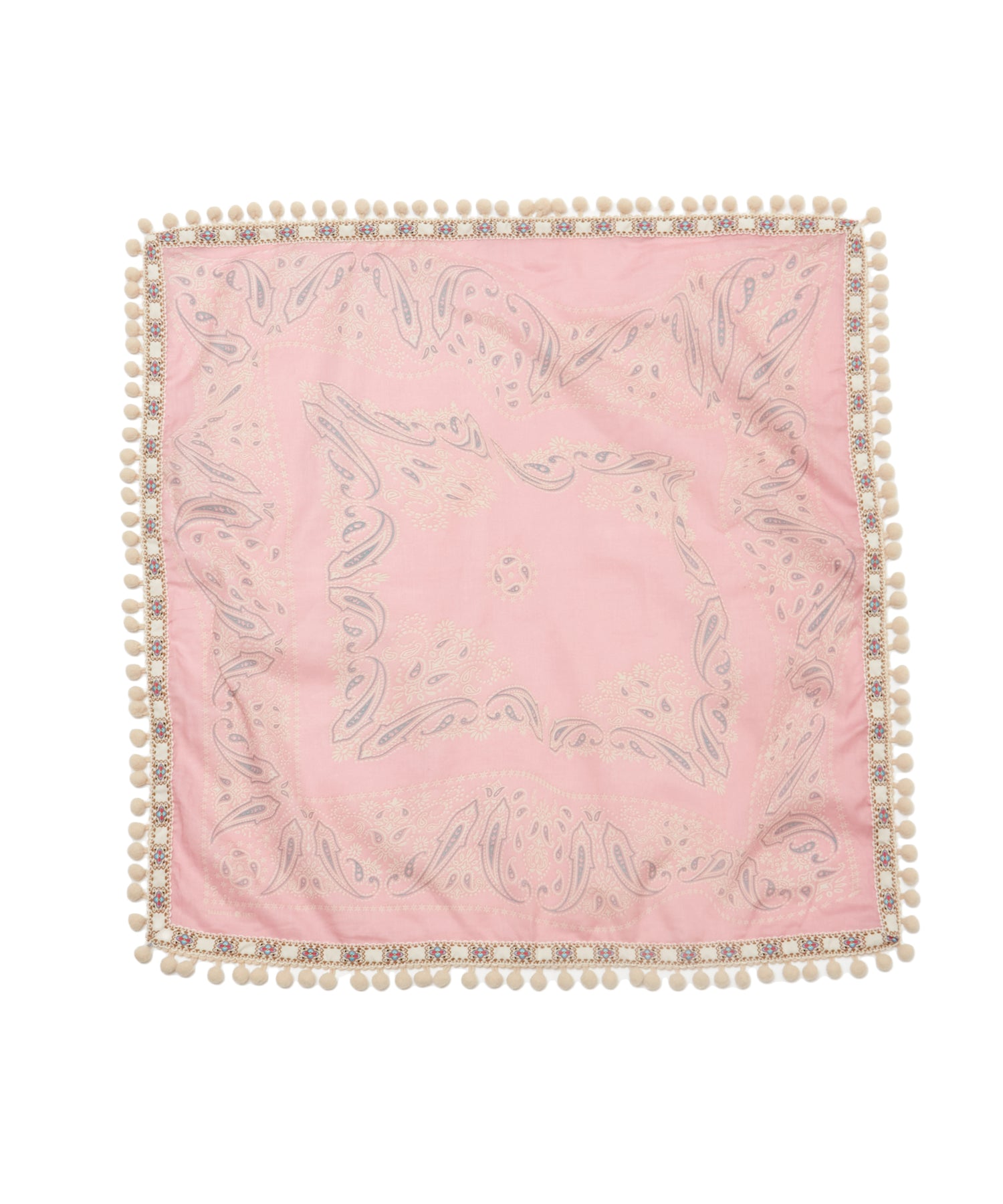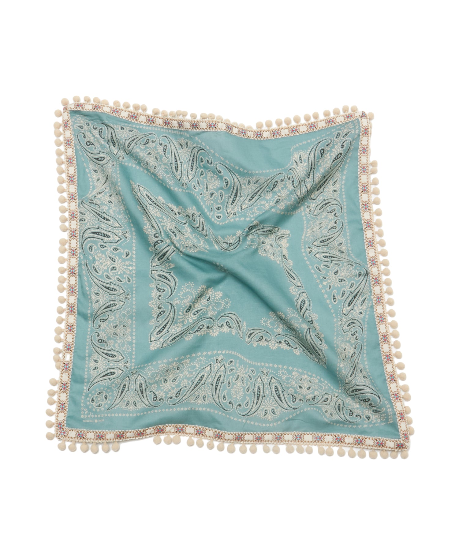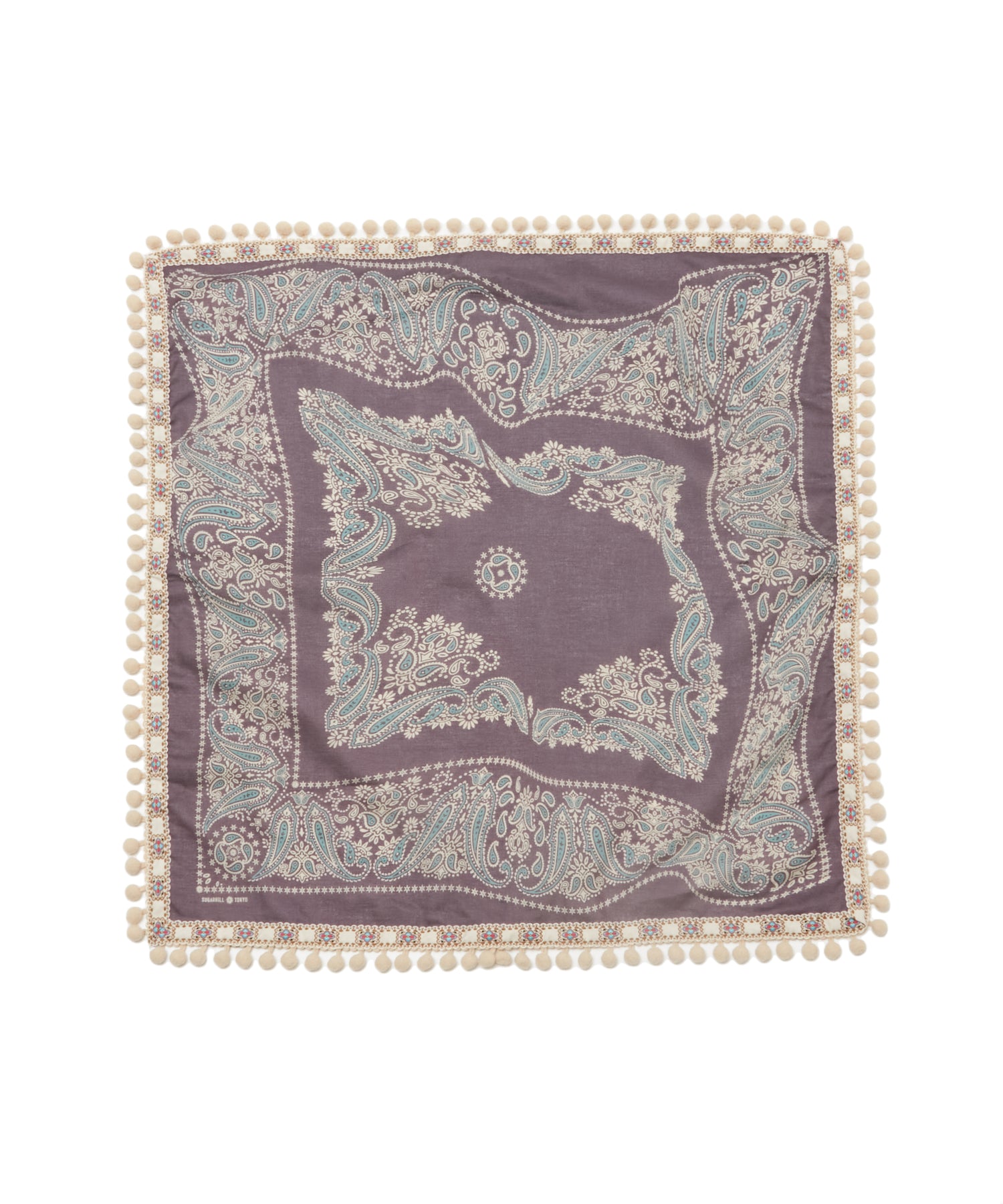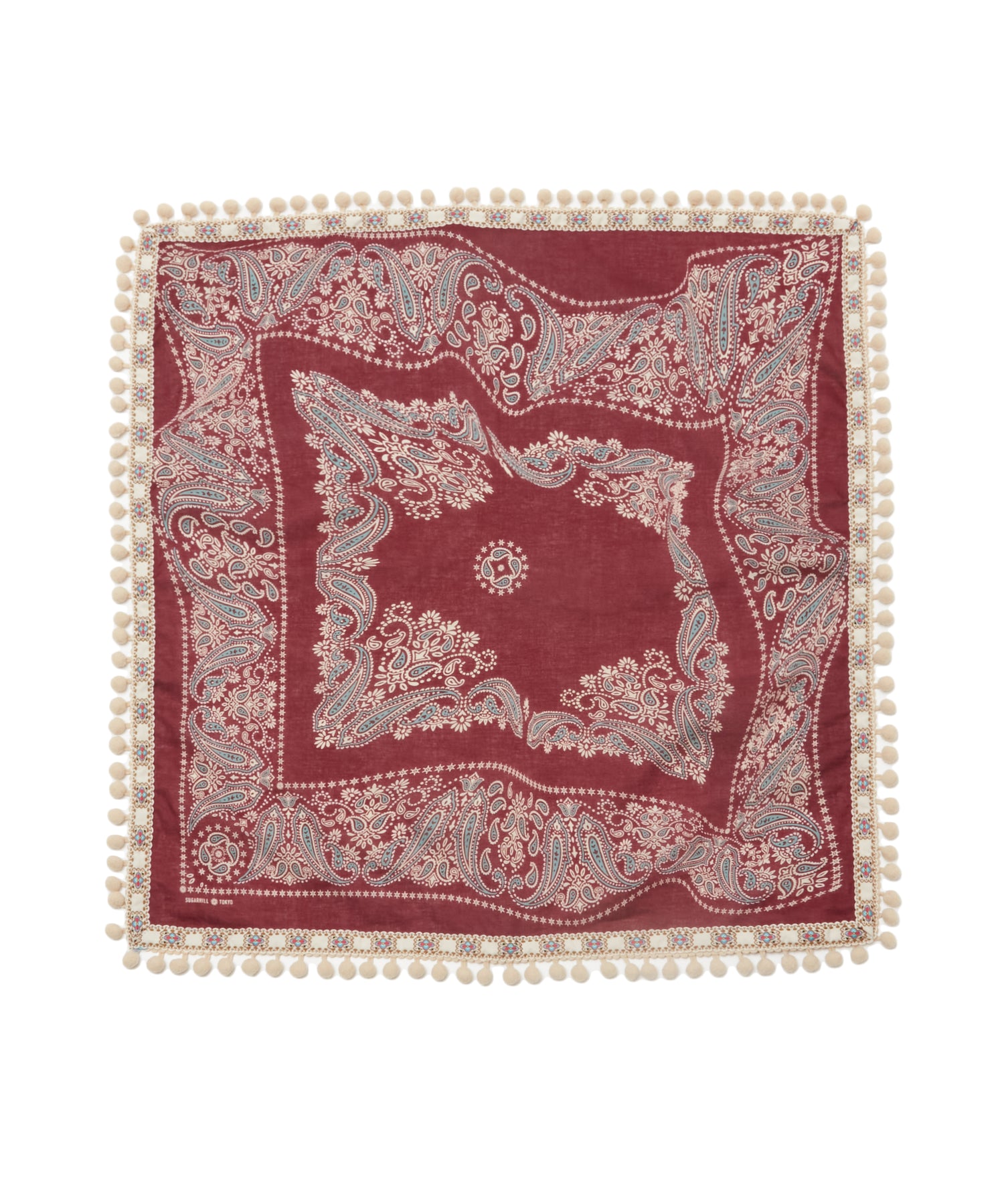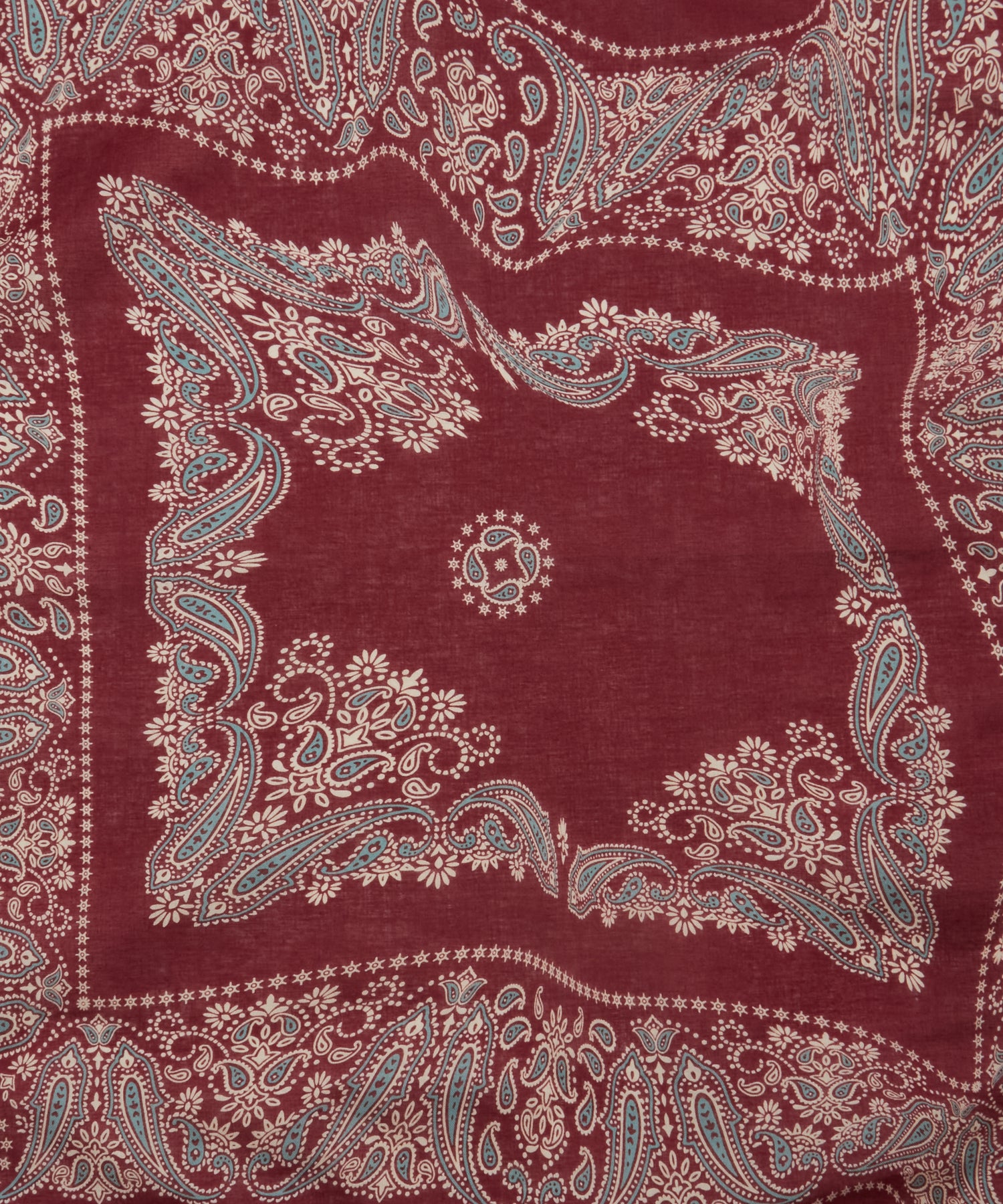 定番のバンダナに、動きのあるディテールをプラス。細かな柄のチロルテープを縁取りに用い、控えめながらも存在感を放ちます。首元に巻く、バッグに結ぶ、腰に垂らす。一枚で多彩な使い方が楽しめるアイテムです。