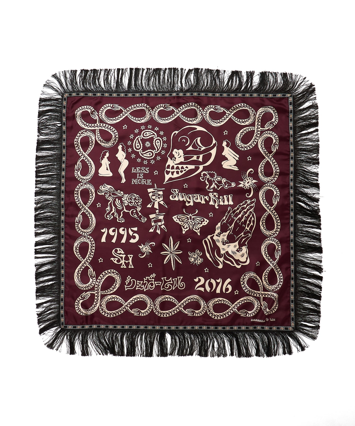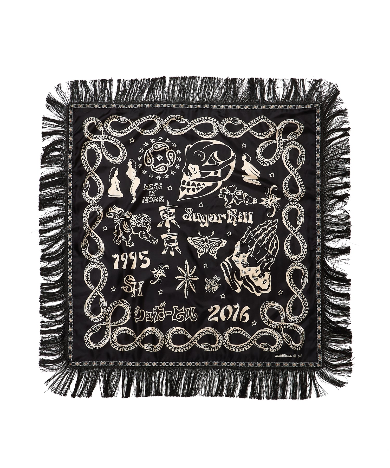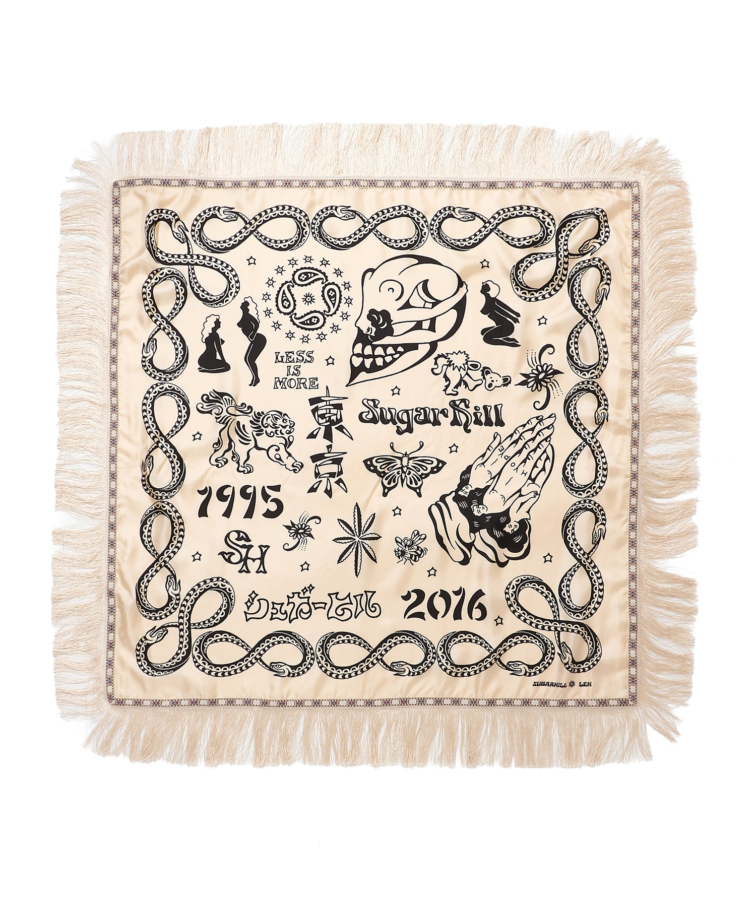 ブランド10周年を記念して制作された、タトゥーアーティスト・山田蓮による描き下ろしデザインを全面にプリントしたスカーフ。アニバーサリーアイテムとして、特別感のある仕上がりです。