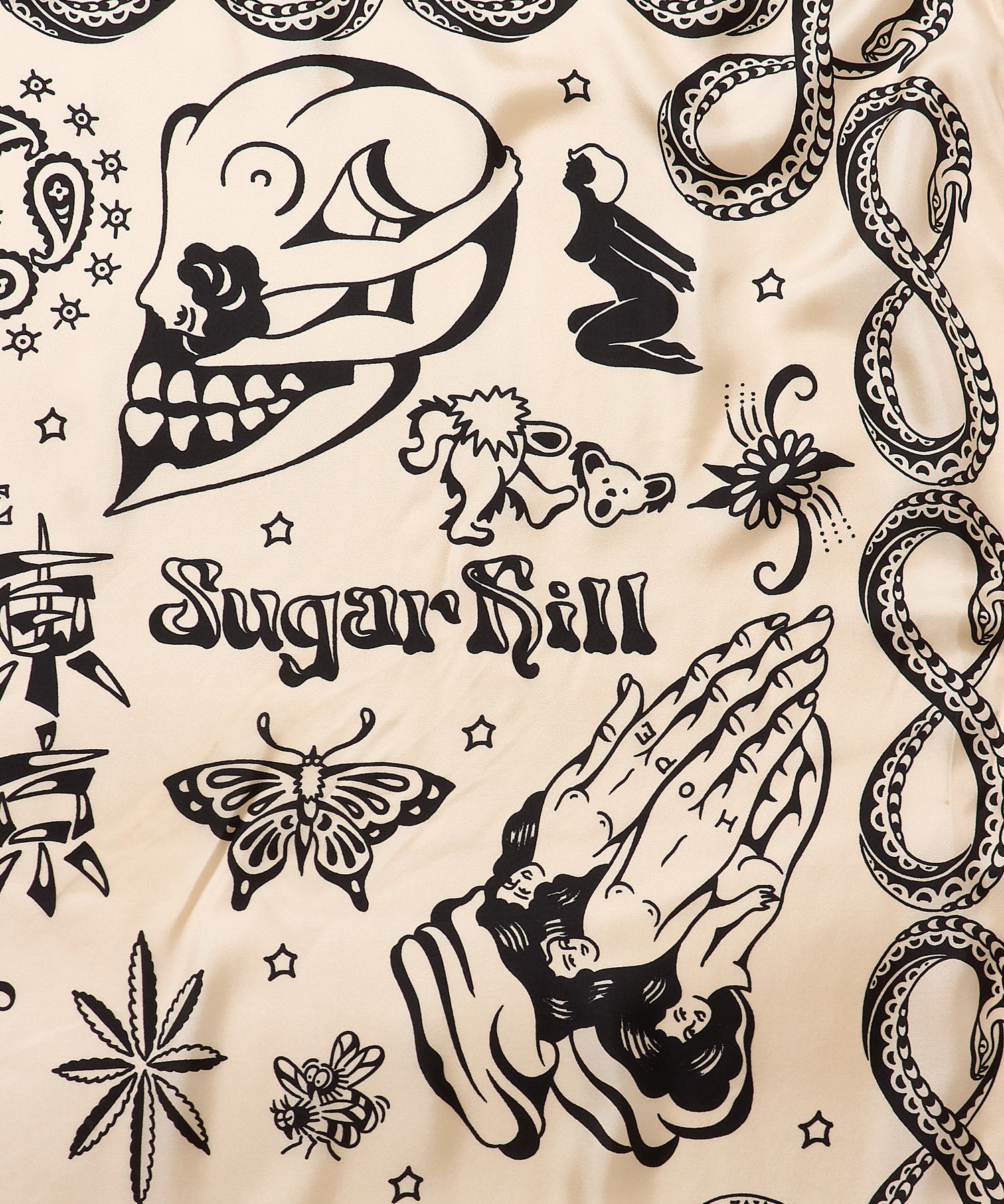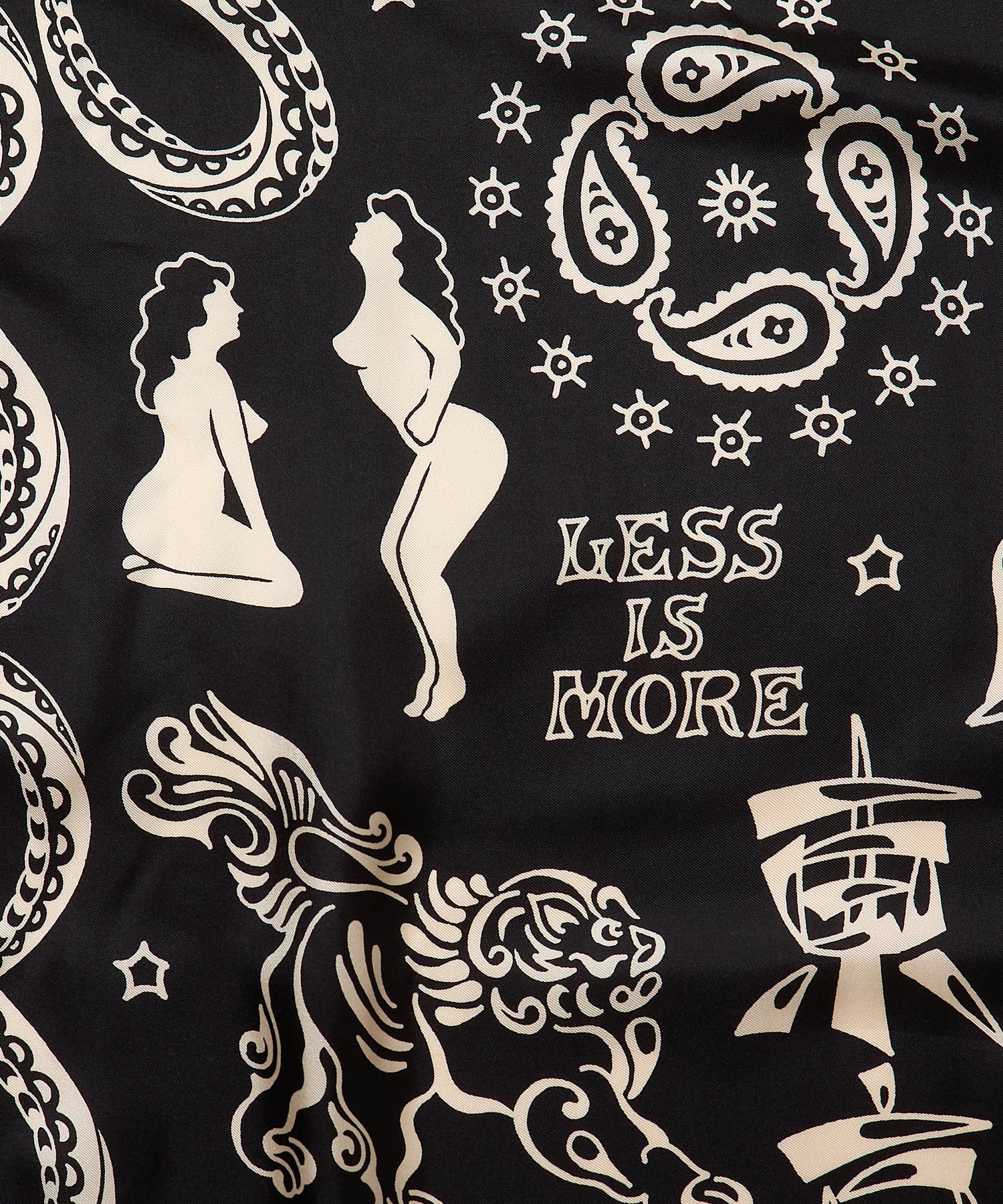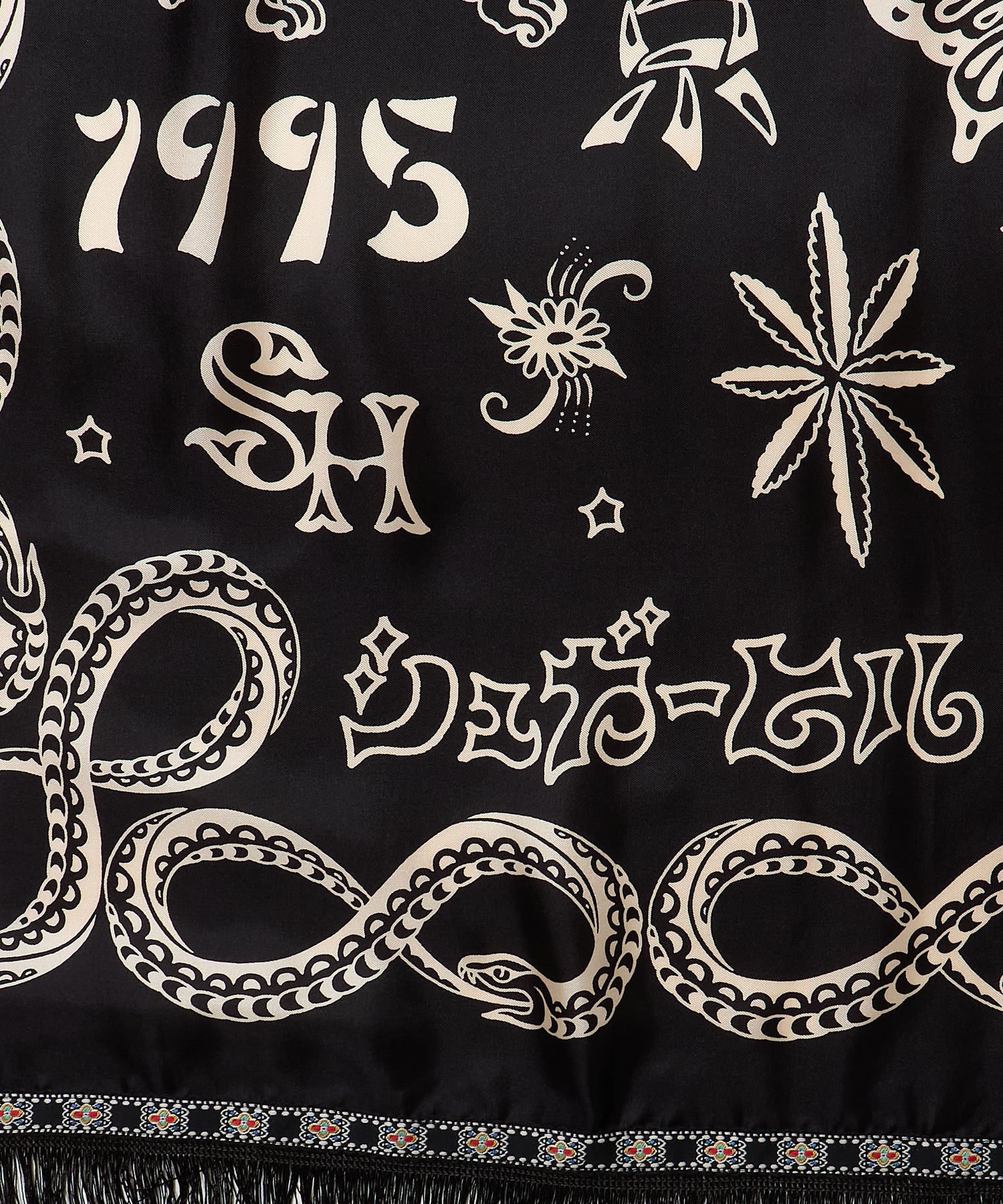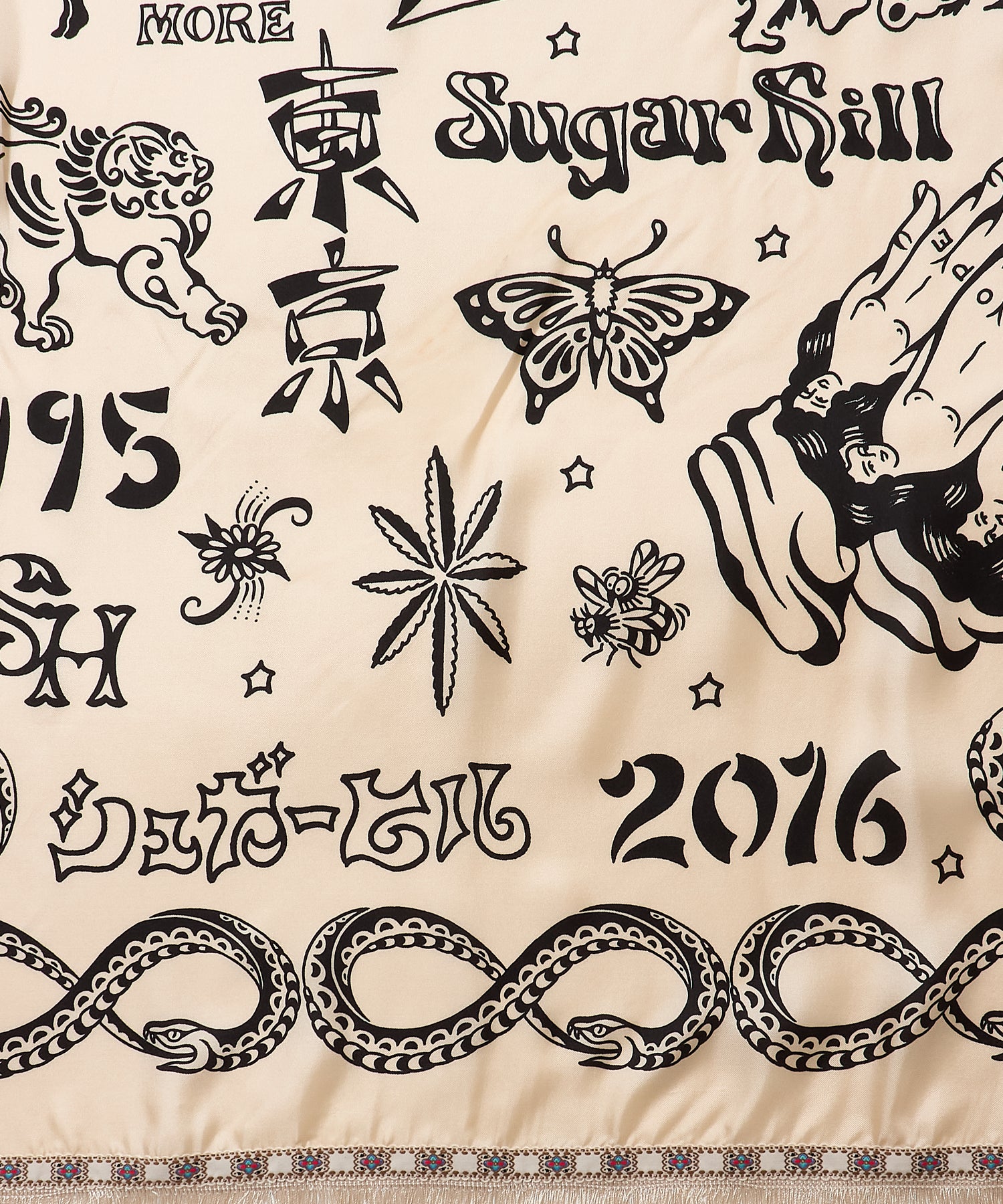 ブランド10周年を記念して制作された、タトゥーアーティスト・山田蓮による描き下ろしデザインを全面にプリントしたスカーフ。アニバーサリーアイテムとして、特別感のある仕上がりです。