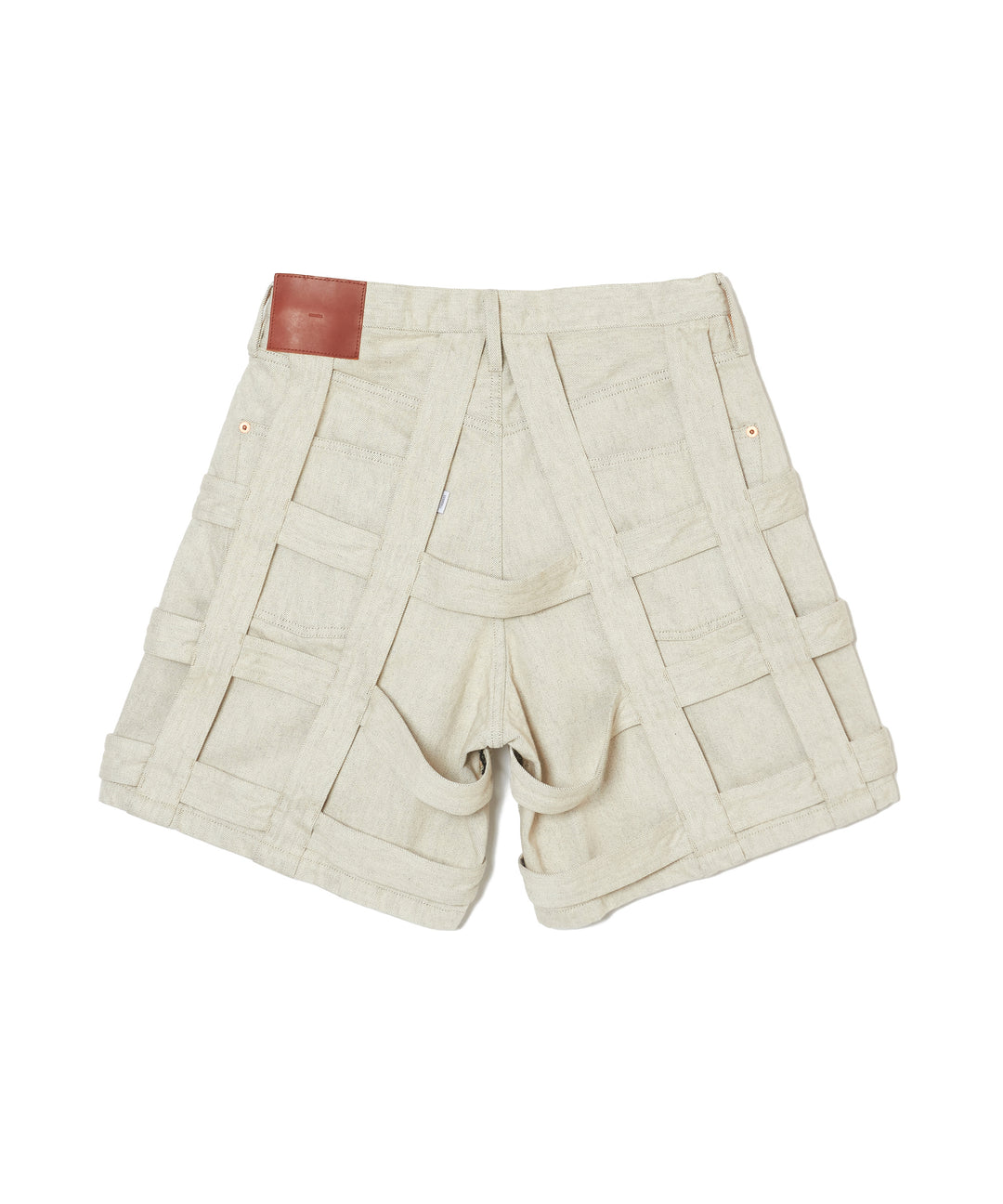 [CATEGORY] DENIM [MATERIAL] Cotton 100% [COLOR]Gray White [TITLE] Caged Denim Short Pants
